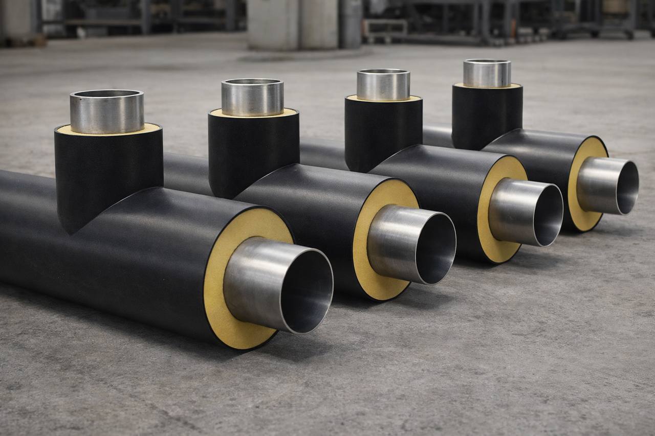 Труба с теплоизоляцией из пенополиуретана в защитной металлополимерной оболочке